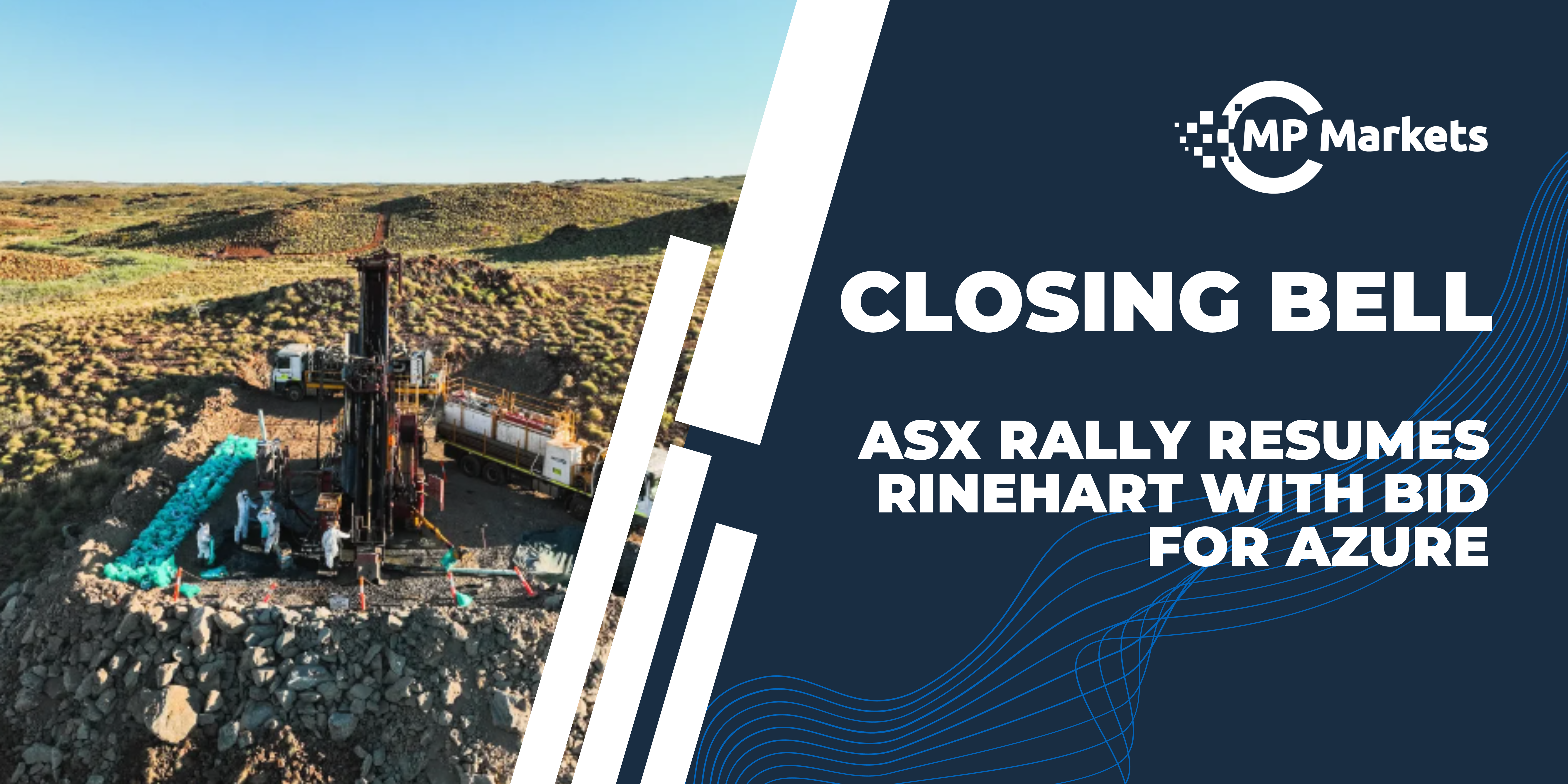 XJO rally resumes, commodities and financials strong. Rinehart with joint bid for Azure Minerals