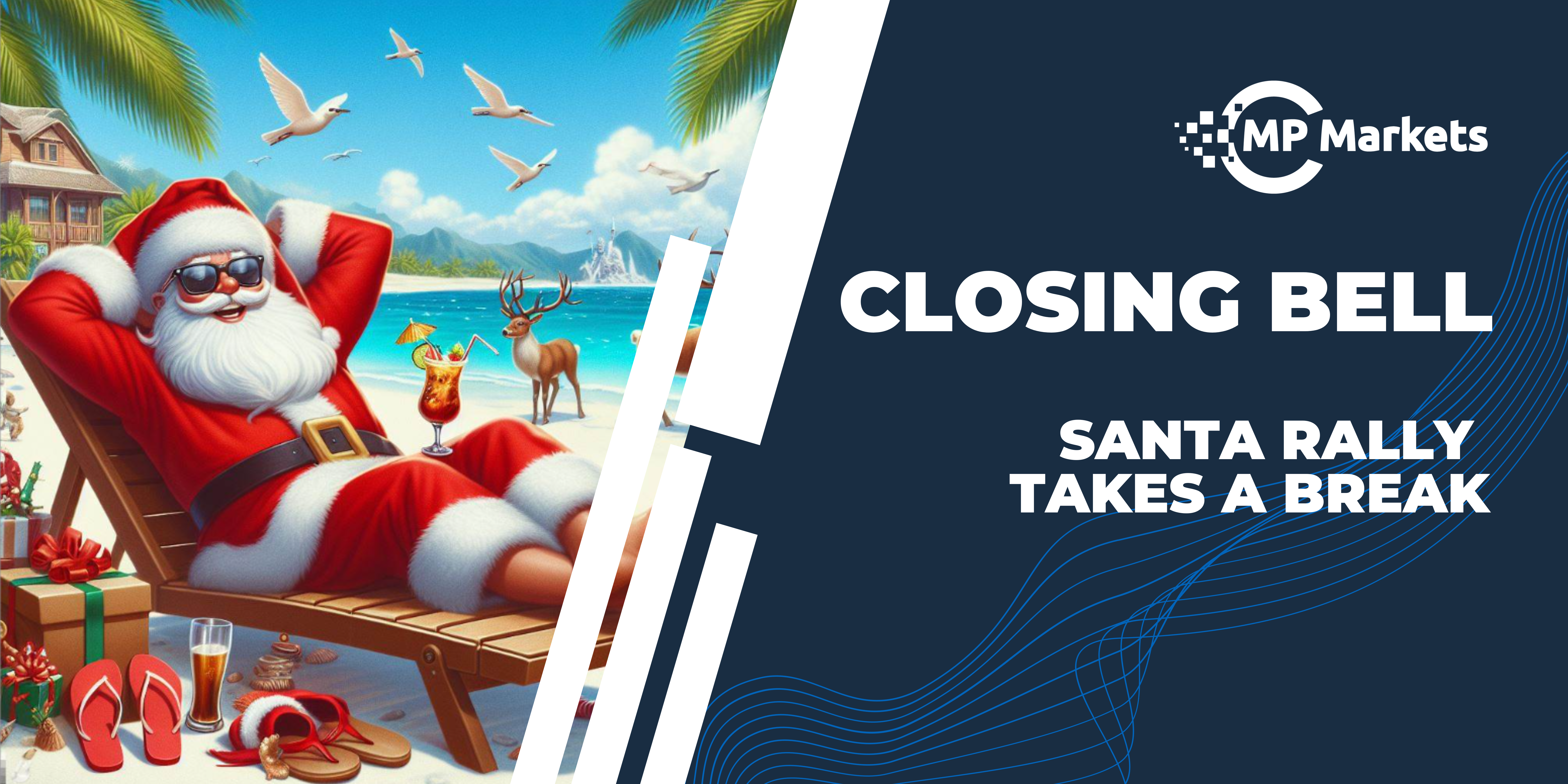 Stocks snapped a nine-day winning streak with a sharp reversal into the close as investors appeared to take some profit from the recent 7-week “Santa rally”.