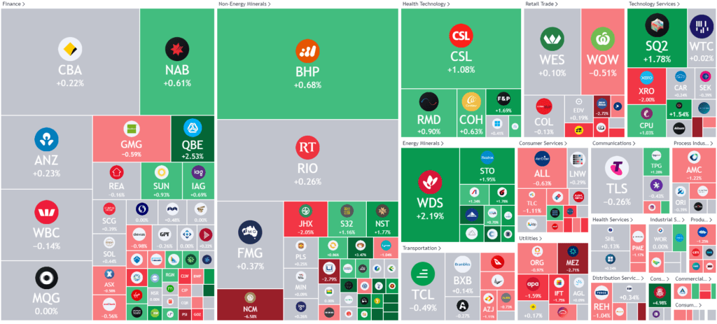 The ASX exhibited a nuanced performance, navigating through a tapestry of gains and losses, reflecting both global influences and stock-specific dynamics. BHP emerged as a focal point, witnessing a 0.5% uptick in shares, propelled by Whitehaven Coal’s strategic acquisition of two pivotal Queensland mines, underscoring a vibrant landscape of competitive positioning and strategic acquisitions.