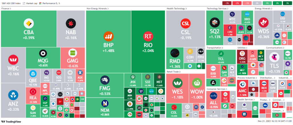 The Australian sharemarket experienced a boost in late afternoon trading, primarily driven by significant gains in the mining sector and a surge in iron ore prices. This uptick was a response to news of additional economic stimulus in China. The S&P/ASX 200 index rose by 0.3%, reaching 7082 points, with the materials sector leading the charge. Major mining companies like BHP Group, Rio Tinto, and Fortescue Metals saw increases of 1.6%, 2%, and 1.7%, respectively. Iron ore futures also rallied by 2% to $US133.75 per tonne.