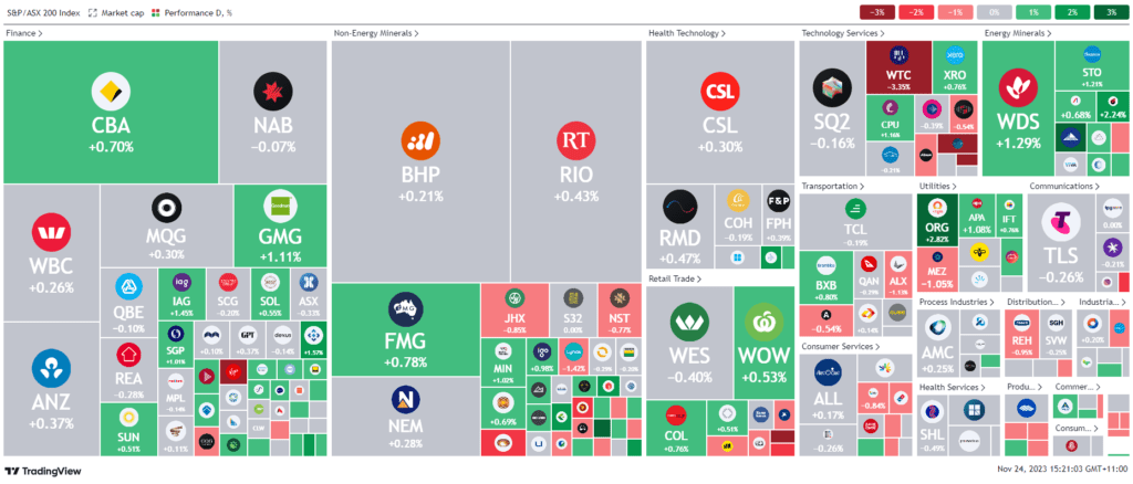 The Australian sharemarket rose on Friday, led by a rebound in energy stocks and anticipation of the OPEC+ meeting. The S&P/ASX 200 index increased by 0.3%, with significant gains in energy and utilities. Despite subdued trading due to the US Thanksgiving holiday, US futures traded higher.