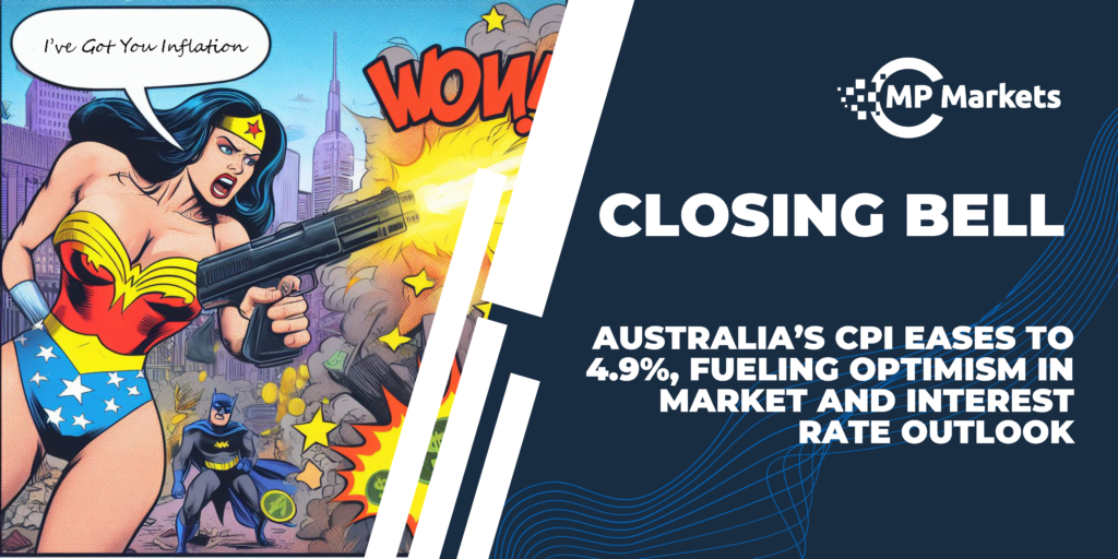 Australian shares rose following lower-than-expected Consumer Price Index (CPI) data, indicating progress in the Reserve Bank of Australia’s inflation control efforts. The S&P/ASX 200 increased by 0.4% to 7043.9, buoyed by gains in interest rate-sensitive sectors like real estate and technology. The CPI rose 4.9% annually in October, below the forecasted 5.2%, leading to a rally in real estate, tech, and consumer discretionary stocks.