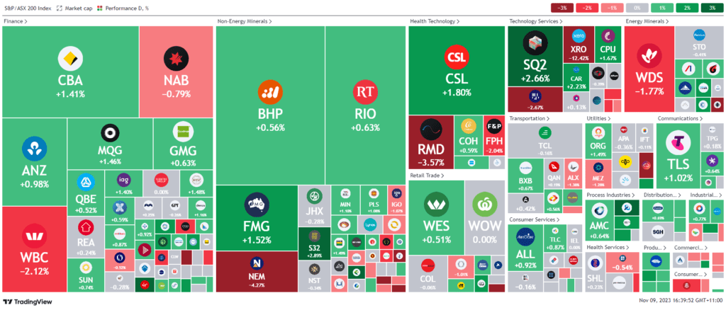 Banks showed mixed results; Westpac fell as it traded ex-dividend, while CBA and ANZ saw gains. NAB’s shares dropped after announcing a $7.7 billion cash profit and increased dividends but also signaled a challenging environment ahead. Challenger’s shares rose after expanding its partnership with Apollo Global Management, and Orica’s shares leaped following a significant profit increase and higher dividends.