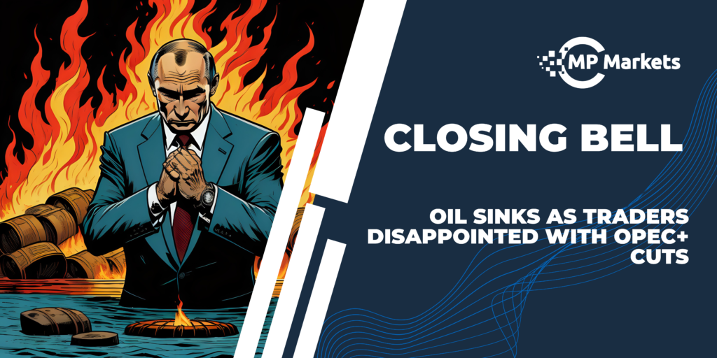 Oil prices dropped sharply following the OPEC+ meeting, which concluded with smaller-than-expected output cuts and unclear quota enforcement. West Texas Intermediate fell by 2.4%, with Angola rejecting its new target and other members’ commitment to cuts uncertain. Saudi Arabia extended its unilateral cut, and Russia increased its export reduction, but overall market disappointment led to a significant price decline.