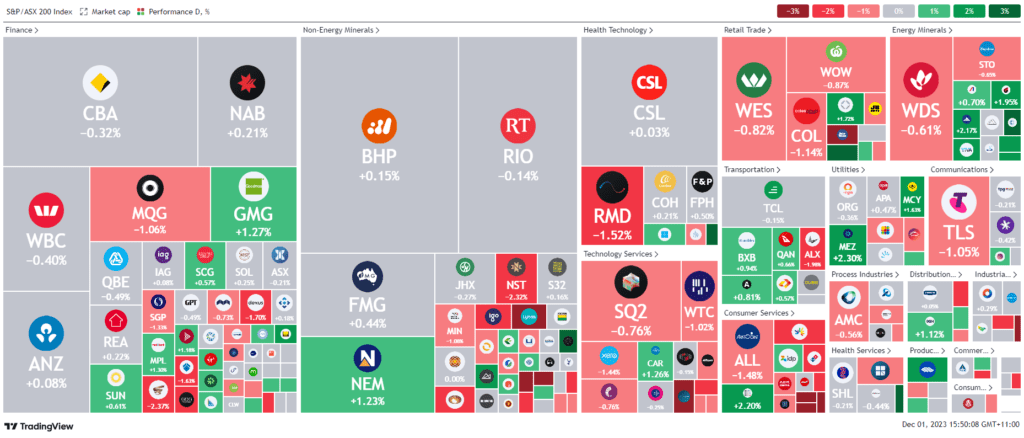 In company news, Premier Investments’ shares increased by 3.6% after projecting higher than expected first-half earnings. SRR Mining’s stock rose by 0.6% following its deal to sell a gold and silver project in Peru. Coles shares dropped by 1.2% after the ACCC approved its plan to buy milk facilities from Saputo. Pilbara Minerals, heavily shorted, saw its shares decrease by 0.4% after AusSuper acquired a 5% stake. Finally, Core Lithium’s stock fell by 3.6% after a downgrade by Citi analysts.