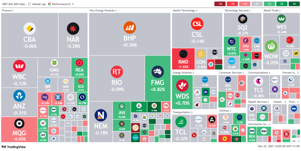 In individual stock movements, A2B Australia surged 18% following a buyout offer from ComfortDelGro. Austal also saw a 3.2% increase after securing contracts to build vessels for the US Navy and Australian government. Conversely, Core Lithium’s shares plummeted 22% due to a review of its business strategy amid falling lithium prices. Additionally, Synlait Milk’s shares dropped nearly 6% due to expected lower net profits, impacted by increased borrowing costs and margin changes.