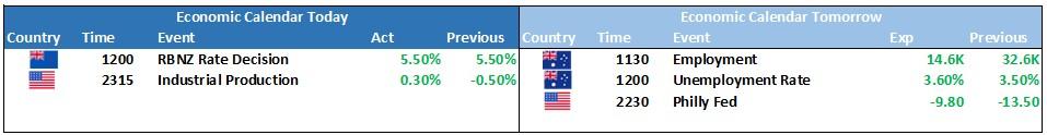 The Reserve Bank of New Zealand (RBNZ) maintained its cash rate at 5.5%. Despite this, the RBNZ hinted at a potential rate rise in the future, emphasizing the need to keep the rate at restrictive levels. The bank has increased rates by 525 basis points since October 2021, leading to a technical recession in the country.