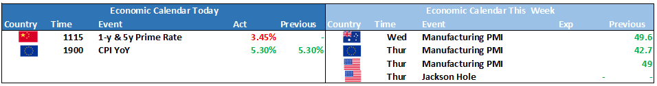 - China’s Lending Rate Cuts – Chinese banks made a smaller-than-anticipated cut to their one-year loan prime rate, reducing it by 10 basis points to 3.45%, despite the central bank’s urging for larger reductions. Contrary to economists’ predictions, the five-year rate, crucial for mortgages, remained unchanged at 4.2%. This unexpected decision, as noted by Zhaopeng Xing of ANZ, suggests banks may have been unprepared but further cuts might occur in the coming months.