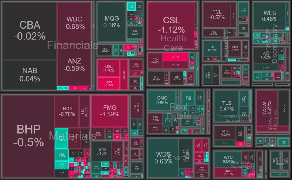 - Iron ore prices – fall to 2-month lows weighing down materials sector