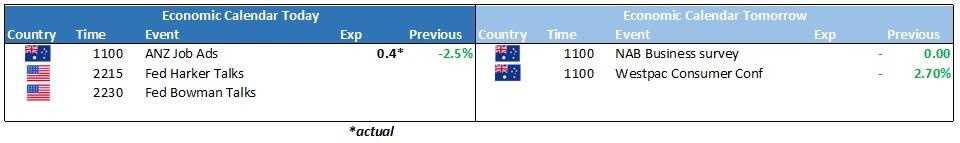The ASX has a quiet day due to the Sydney bank holiday with volumes thinner than usual. Lithium stocks were a bright spot, led by PLS who upgraded their resource by 30% at their Pilgangoora mine to 407kt from 300kt. Oil held gains after Ukraine attacked another Russian vessel over the weekend, putting at risk significant flows of the nation’s commodities from the Black Sea such as crude and grains. Iron ore fell to fresh 2-month lows, dragging down the big miners. This compounded a weak earnings report from RIO last week which saw declining profits and compressed profit margins. Markets were also awaiting key inflation readings from the U.S. and China this week, with the latter expected to slip closer towards disinflation amid a slowing post-COVID economic recovery.