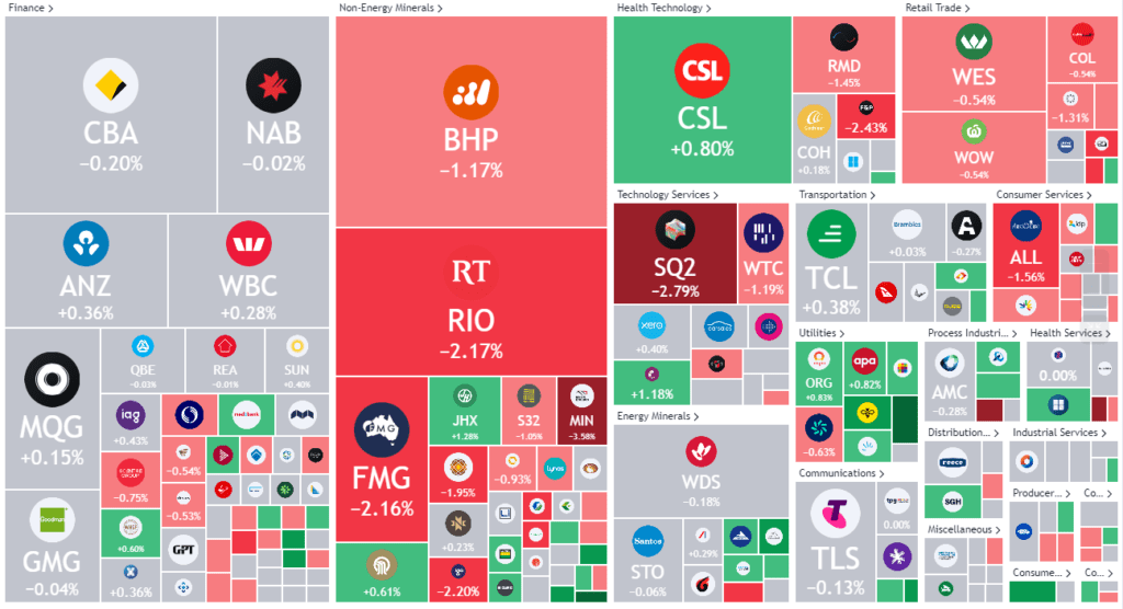 the materials sector experiencing the most significant decline. Major mining companies such as Fortescue Metals, BHP, and Rio Tinto have all seen a drop of over 1%. This decline aligns with the falling iron ore prices, which are currently priced at $US113.75 a tonne, a decrease from $US116 earlier in the week. In corporate updates, AMA Group shares plummeted by 47% following the conclusion of their $55 million equity raise. The shares were priced at 7.5¢, a notable 37.5% discount from the 12¢ price on August 30. Meanwhile, Orora shares have continued their downward trend, dropping by 2.9%. This decline comes after the company’s $1.3 billion equity raise intended to finance the acquisition of France’s Saverglass. Orora’s shares have decreased by 17.8% this week.