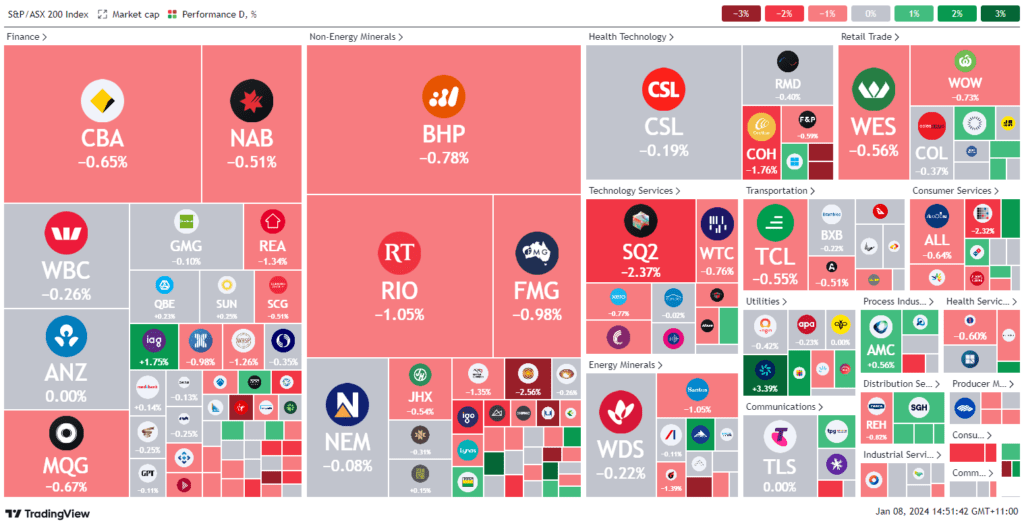 Australian shares are experiencing a downturn in the final trading hours, extending the challenging start witnessed last week. The S&P/ASX 200 has declined by 0.2%, currently standing at 7472.2 points, with the All Ordinaries following suit with a 0.2% decrease. Amid a lackluster market, none of the ASX’s 11 sectors have recorded movements exceeding 0.5%. Energy stocks, initially supporting the benchmark, have retreated to a modest 0.3% gain. Notably, Kali Metals, a lithium hopeful, made a remarkable debut, surging approximately 75% from its IPO price of 25¢ per share. Uranium stocks are standout performers, with Boss Energy rising 8.4% to $4.58 and Paladin Energy up 4.1% to $1.06, driven partly by the UK government’s announcement of a £300 million investment in a new high-tech nuclear fuel plant. Red 5 has gained 3.6% at 29¢, affirming its alignment with FY24 production guidance. Metcash has appointed Richard Murray, former CEO of Premier Investments, as the CEO of Total Tools Holdings, resulting in a 1% increase in shares to $3.53 following Paul Dumbrell’s departure.