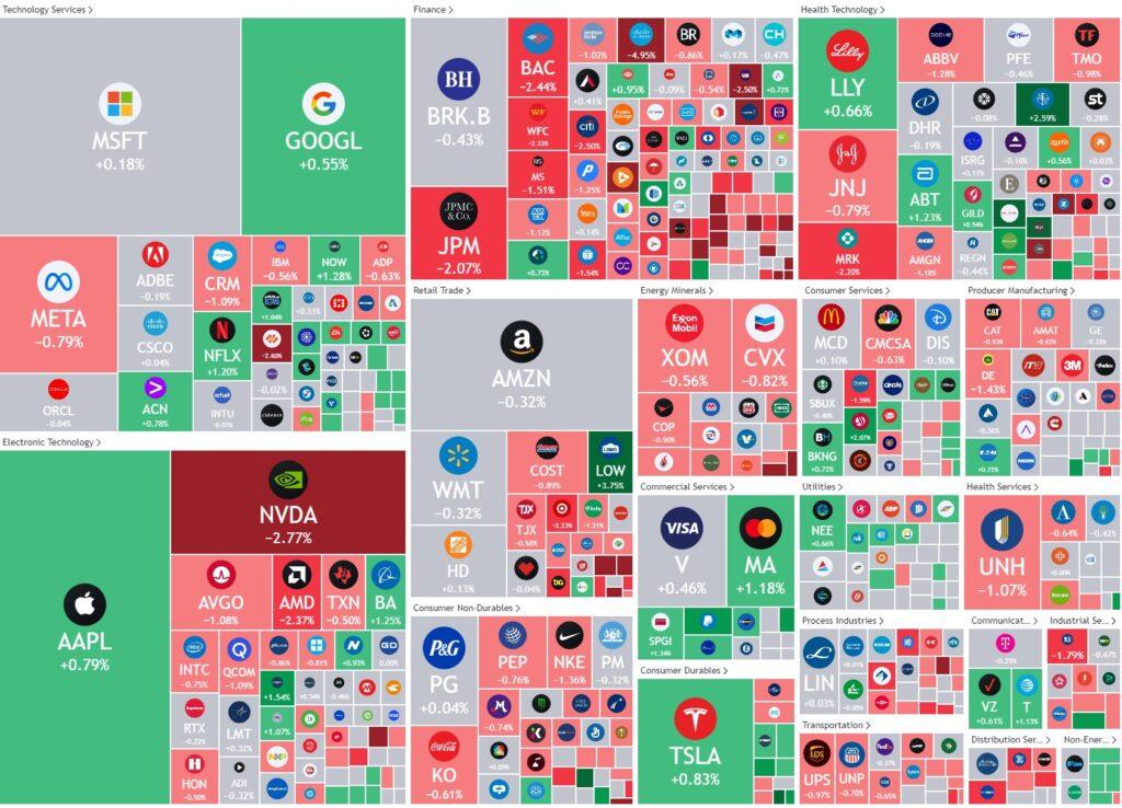 Regional banks including Regions Financial Corp, KeyCorp, and Zions Bancorporation fell sharply after credit ratings agency S&P Global downgraded its credit ratings on several regional banks, souring investor sentiment on the sector.