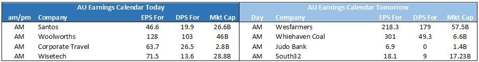 Earnings will remain the headliner today as key sector leaders Woolworths, Santos, Wisetech, Dominos and Corporate travel deliver FY results this morning. Despite a poor result yesterday from BHP, a sharp spike in the iron ore price overnight will help the materials sector, while on the economic front we get manufacturing data across the globe