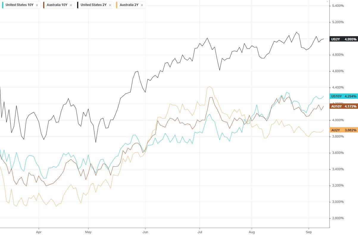 Equities rode tesla and big tech higher at the start of the week ahead of Apple’s eagerly anticipated iPhone 15 launch due Tuesday and inflation data later this week.