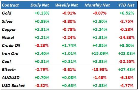 Weakness in the USD and optimism around Chinese inflation data over the weekend should see the materials sector buoy the market, however the late rally yesterday may have already done most of the heavy lifting. The banks were also strong yesterday, bouncing out of recent lows, a pattern that may continue. Aside from that, we will still be watching bond yields as the US10Y and AU10Y are just 5-10bps from multi year highs on the BOJ comments of a potential pivot later this year.