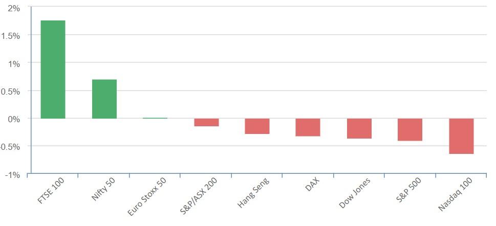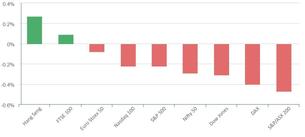 Stocks edged lower overnight as Treasury yields rose to their highest level in more than a decade on fresh inflation concerns as investors awaited the Federal Reserve monetary policy update due Wednesday.