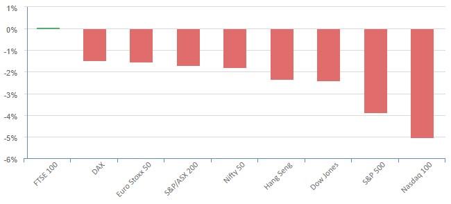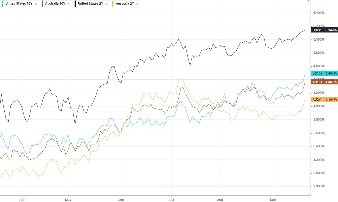 Equites, particularly growth stocks, slumped overnight under pressure from a spike in Treasury yields testing multi-decade highs as investors continued to digest the prospect of a higher-for-longer Federal Reserve interest rate regime as the Bank of England made very clear they will be in no rush to pivot