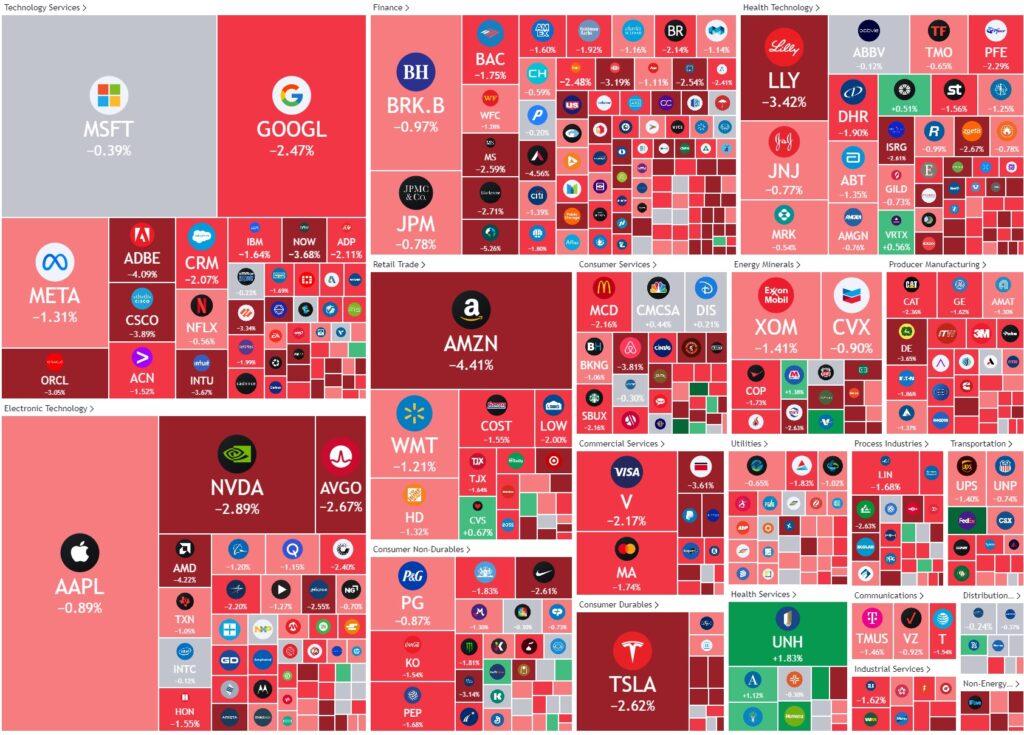 Rising yields also added concern to the semiconductor sector as Broadcom led the decline for chip stocks as Google is reportedly mulling whether to ditch Broadcom as its artificial intelligence chip supplier for its own in-house chips by 2027.