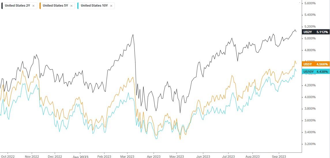 Benchmark U.S. Treasury yields retreated from 16-year highs as investors turned their focus from hawkish Fed guidance to key economic data waiting in the wings.