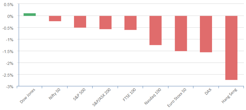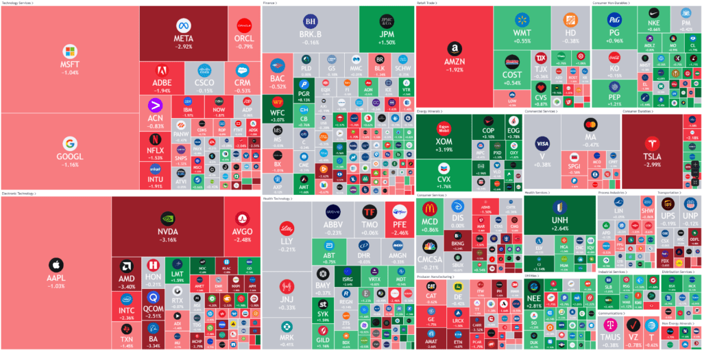 Big tech including Apple, Meta, Alphabet, and Microsoft pressured the broader market, while chip stocks including Nvidia added to the pressure amid concerns about fresh U.S. restrictions on chip exports to China. The White House is weighing up additional options to prohibit Chinese companies from accessing artificial intelligence chips from U.S. companies, Reuters reported, citing unnamed sources.
