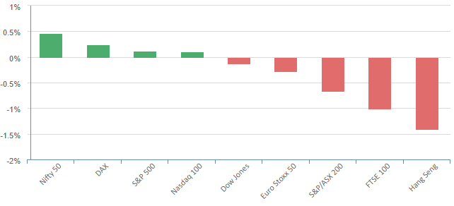 Equities drifted lower overnight with pressure from Cisco and Walmart after disappointing forecasts, while a drop in Treasury yields cushioned some megacap stocks.