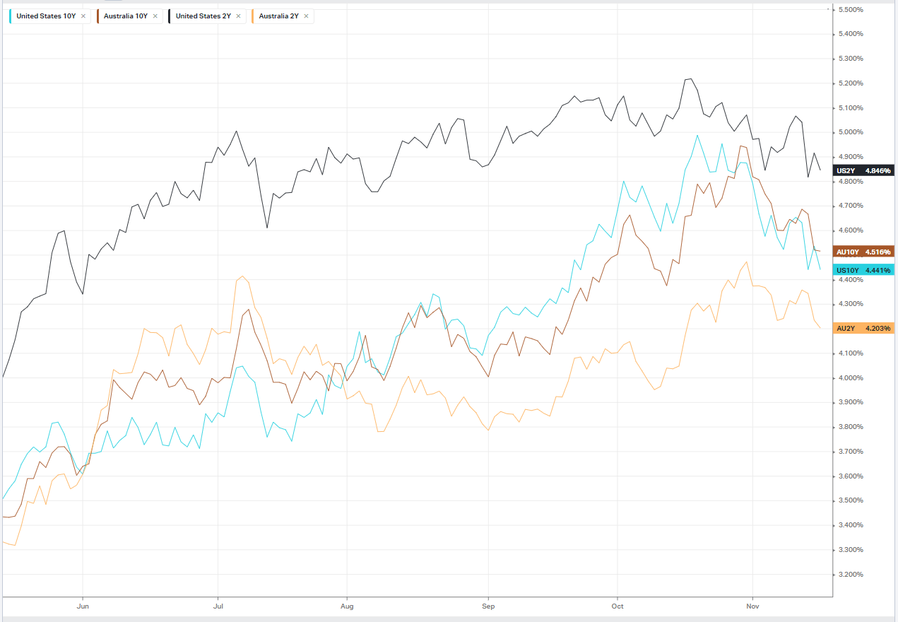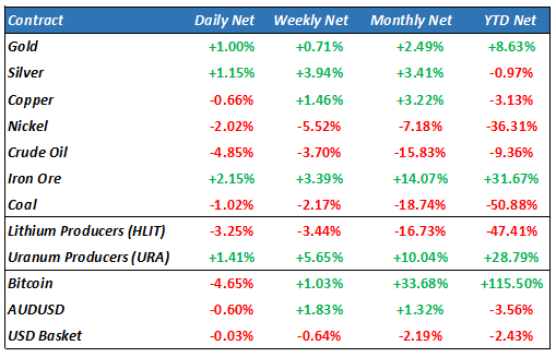 Today is likely to see a very mixed market with very conflicting (and confusing) forces driving parts sectors in complete isolation to the broader market. We are seeing underlying commodities like oil, drop on economic concerns in Asia, while the recent rise in Iron ore to 2 year highs sparked by optimism on a Chinese economic recovery. We have the US megacaps rallying on a possible peak in interest rates, while the rest of the market is starting to worry about the slowing in economic activity. I would like to be able to explain this to readers, but in my 30 years of watching markets, I cant think of a period where each sector is seemingly “choosing their own” macroeconomic outlook