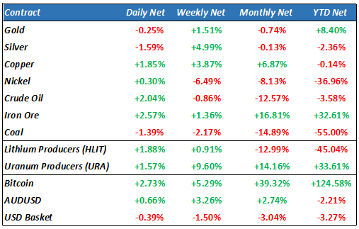 Despite the lethargic reaction from overnight SPI futures, we should see positive market today as the strength in Iron Ore, Oil and the US bank stocks should be enough catalyst to drag the market higher. As the US hits 52-week highs, we note that the ASX200 is 7% from its year high and while most of the US gains are in the tech sector, they lean on of soft landing outlook which will also benefit our market
