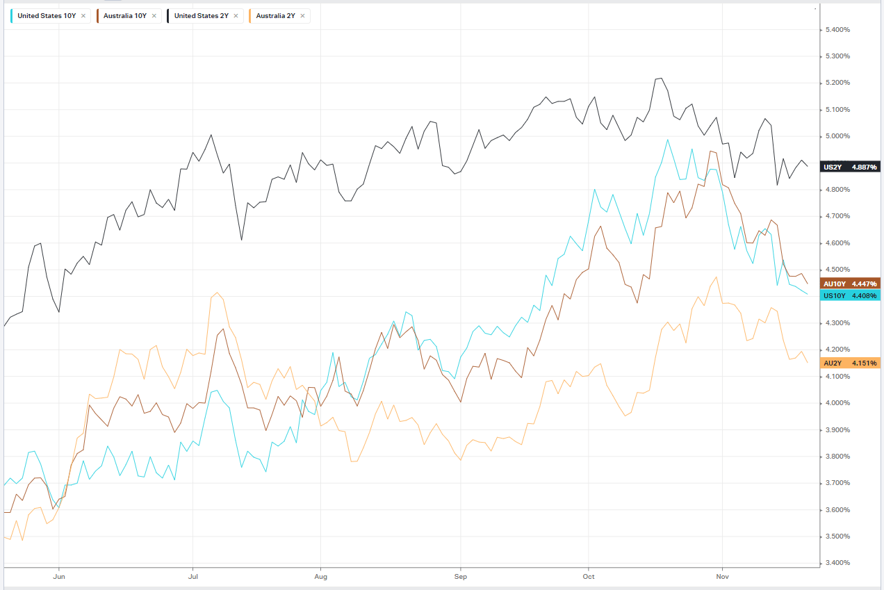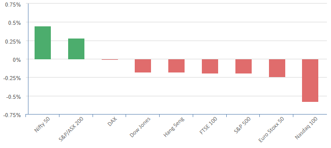 Equities eased from 12-month highs overnight as the release of the minutes from the Federal Reserve’s previous meeting drew a muted reaction, with investor focus now shifting to earnings from chipmaker Nvidia