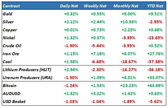The ASX should see a positive start to the week with a positive US lead. With the fall in the USD and bond yields gold and silver stocks should shine while fresh 15 month highs in iron ore will likely see the materials sector the best performer of Mondays session