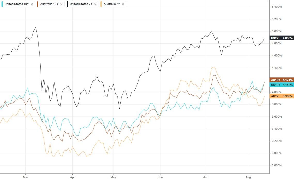 The upside was capped in equities on Friday night as renewed inflation fears pushing Treasury yields higher and deflating investor bets that the Fed is unlikely to resume rate hikes later this year. PPI increased 0.3% in July, above economists’ forecasts of 0.2%, and pick up from the 0.1% pace seen in June. In the 12 months through July, the PPI rose 2.4%, just above estimates of 2.3%. Coupled with yesterday’s headline rise in the CPI, this morning’s hotter-than-expected PPI data threw a wet blanket over the market’s earlier optimism the Committee will move back to the sidelines in September. Big tech, with the exception of Apple, struggled to turn positive as Meta led to the downside falling more than 1%. Chip stocks continued to add pressure on tech, with NVIDIA Corporation slipping 3% as the chipmaker fights to keep its extraordinarily optimistic $1 trillion valuation.