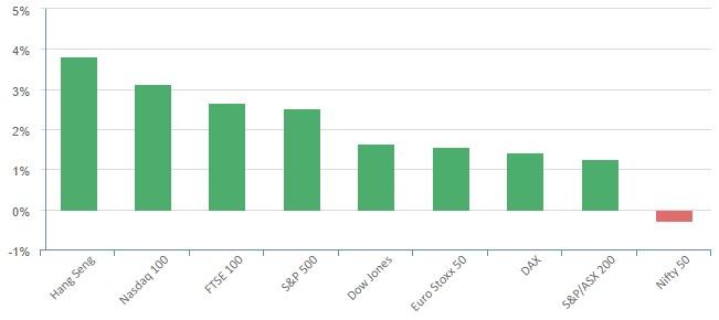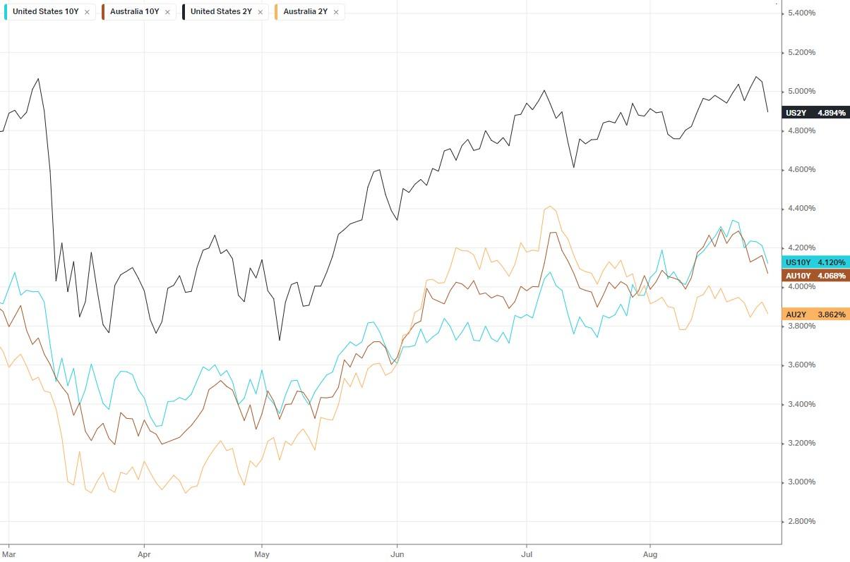 Equities ended higher overnight as Treasury yields slipped after weaker economic data stoked optimism that the Federal Reserve will likely skip rate hikes in September. Treasury yields continued to ease as the latest economic data showing an unexpected fall in consumer confidence and a surprise drop in job openings pushed up bets that the Fed is likely to stand pat on rates in September. The Conference Board’s consumer confidence gauge fell to 106.1 in August from 114 in July, confounding economists’ forecast for a reading of 116. The U.S. Labor Department’s latest Job Openings and Labor Turnover Survey (JOLTs) report, a measure of labor demand, showed job openings in July fell to about 8.8 million, missing expectations of 9.46M. Following the weaker-than-expected data, suggesting that the Fed’s rate hikes are beginning to work, bets on a Fed pause in September jumped to nearly 90% from about 80% last week