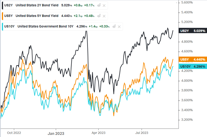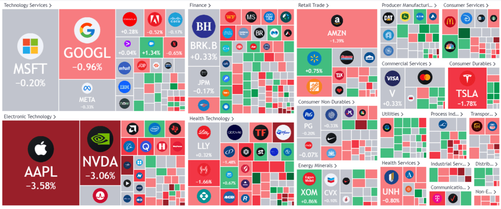 Markets faced turbulence on Wednesday with major indices closing in the red, driven by renewed inflation concerns and a significant drop in Apple’s stock. The Dow Jones, Nasdaq, and the S&P 500 fell by 0.6%, 1.1%, and 0.7% respectively. U.S. services activity for August exceeded expectations, intensifying inflation worries. The rise in the services activity to 54.5 from 52.7, coupled with a higher prices paid index, has increased the likelihood of a November rate hike to almost 50%. Apple’s stock took a hit, plummeting over 3% after China restricted iPhone usage in government agencies, signaling its intent to reduce dependence on foreign technology.