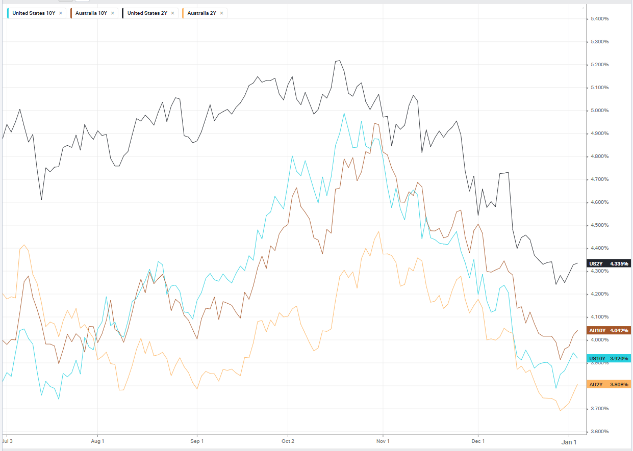 Profit-taking continued for a second day after a strong finish to 2023, where the S&P500 rallied 15% since Early November.