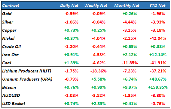Uranium took a breather, settling unchanged for the first day in a month. The URA ETF in the US made a fresh record high
