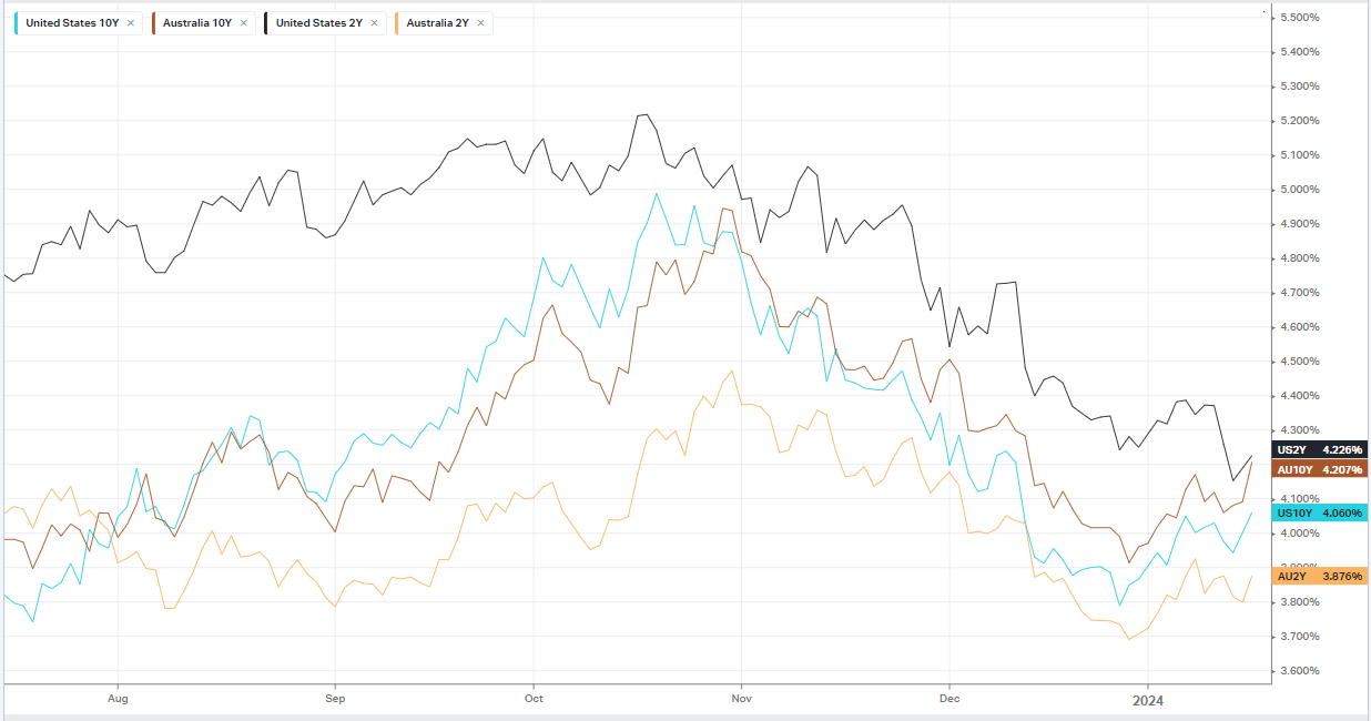 Federal Reserve Governor Christopher Waller said he expects the Fed to cut rates this year, but stressed that there was no need to the central bank to cut rates quickly as the economy remains in good shape. The remarks cooled some optimism for a cuts to begin in March, sending Treasury yields sharply higher.