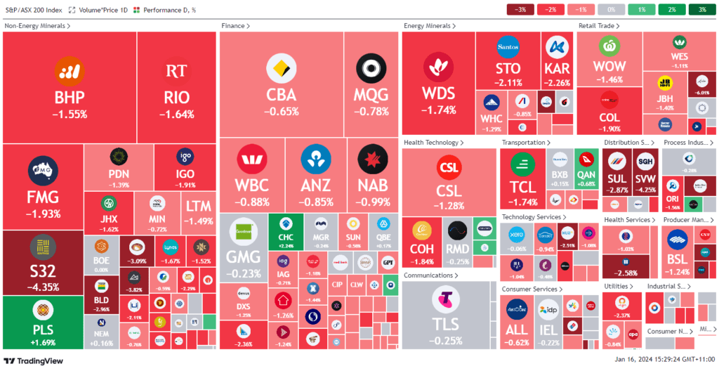 Energy stocks were among the biggest decliners on the Wall Street as oil prices swung between gains and losses amid ongoing tensions in the Middle East including fresh attacks by Houthi rebels on cargo vessels in the Red Sea. Oil prices were also dragged lower by stronger dollar after Fed Governor Waller played down sooner rather later rate cuts.
