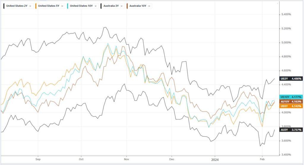 Equities surged higher with the S&P500 closing above 5,000 for the first time on Friday and Nasdaq briefly traded above 16,000, with boosts from megacaps and chip stocks, including Nvidia as investors bet on artificial intelligence technology and eyed strong earnings data.