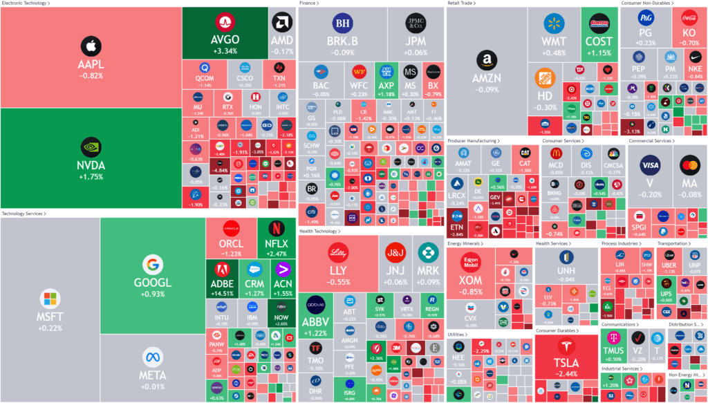 - Adobe Systems +14% – stock soared 14% after the software giant logged strong earnings and hiked its 2024 guidance on higher demand for its AI-powered editing tools. The results also included stronger ARR guidance, a “reaffirmed outlook for Creative segment growth in 2H and an absence of any ‘weak macro’ commentary,” UBS said as it lifted its price target on the stock to $560 from $540 a share.
